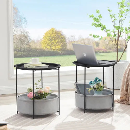 Superficie versátil y con estilo: Su bandeja superior redonda y sofisticada es ideal para colocar tu taza de café, un libro, tu dispositivo móvil o elementos decorativos que reflejen tu personalidad. ¡Todo al alcance de tu mano y con un toque de distinción!